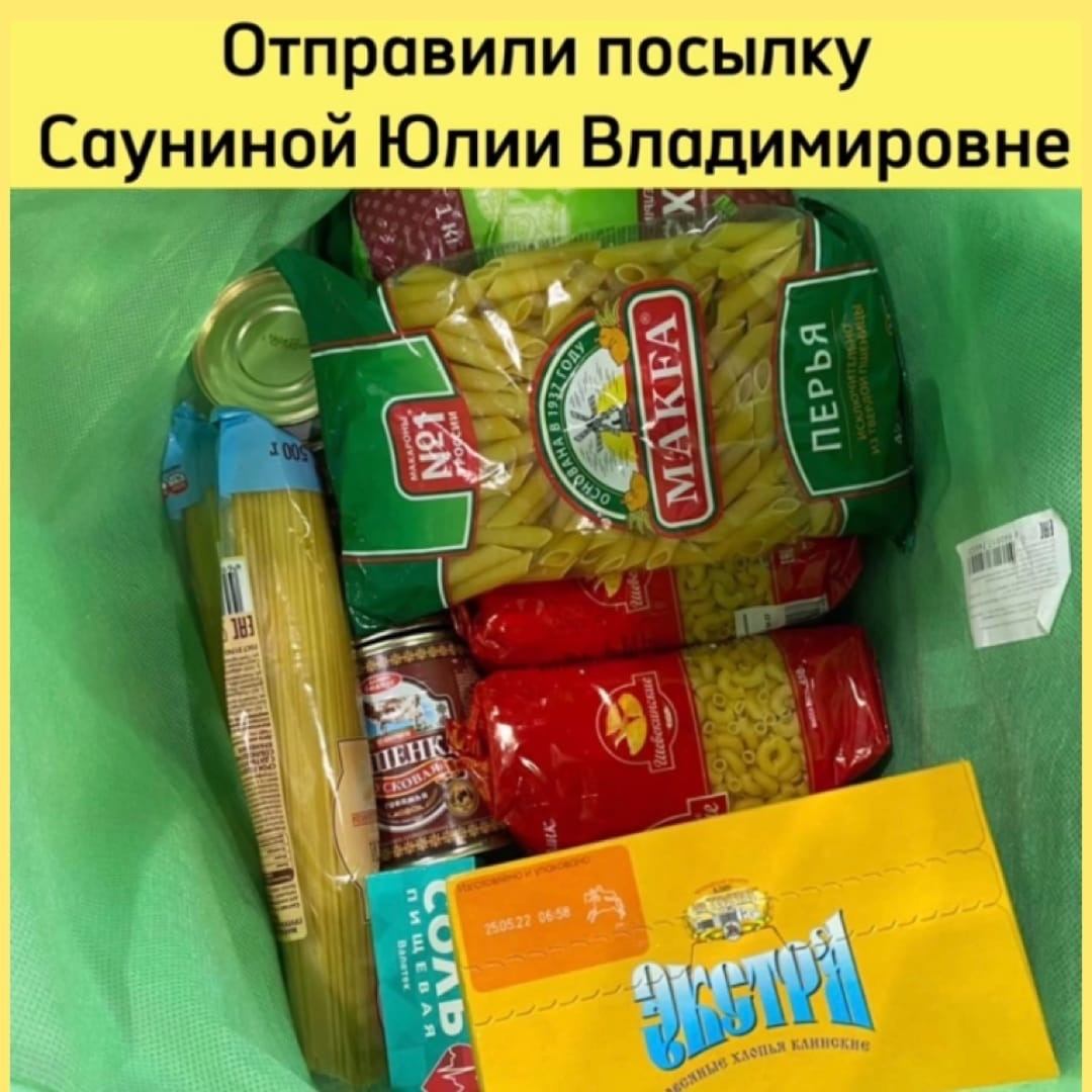Мы отправили Светлане Владимировне посылку с продуктами. Спасибо всем кто помог в сборе средств!
