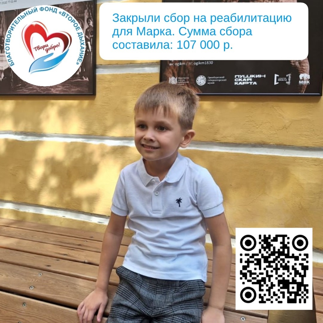 Дорогие друзья! С вашей помощью нам удалось закрыть сбор на реабилитацию для Марка, ему 5 лет.