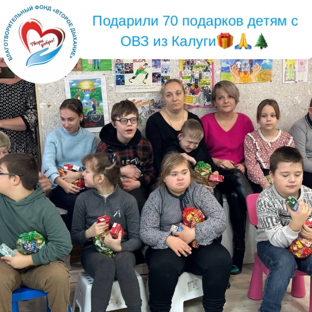 Дорогие друзья! Вчера 20 декабря наш Благотворительный Фонд «Второе дыхание» поздравил 70 детей с ОВЗ региональной организации «Город Надежды» в городе Калуга.🎁🌲🌸
