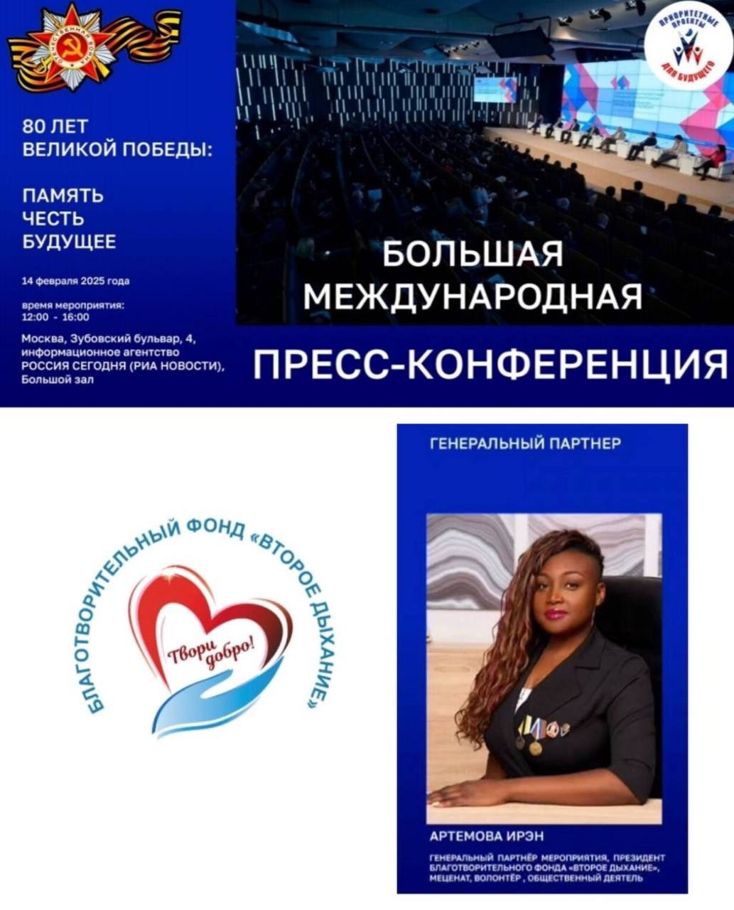 Президент нашего Благотворительного Фонда «Второе дыхание» Ирэн Артемова выступает генеральным партнером этого мероприятия.